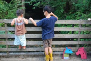 荒馬踊りの馬の造形を作っているばんちゃんに、
