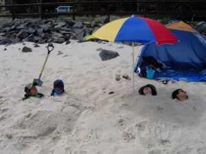 2. 頭だけ出して全身を砂に埋める