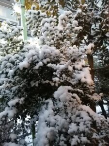 一昨日まで暖かかったのに、急に冷え込んで雪が降って。