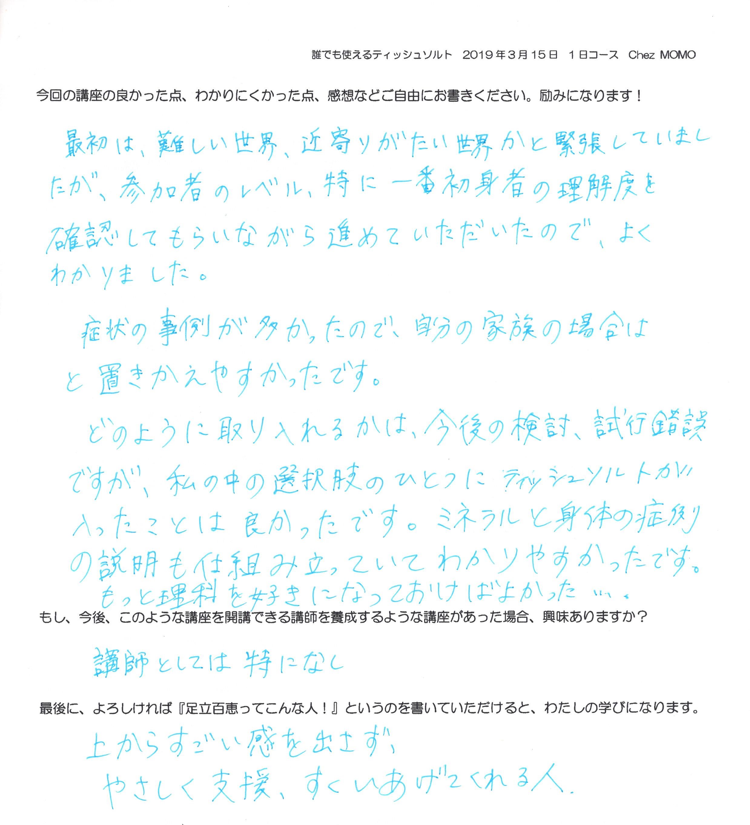 1つ1つの細胞にちゃんとミネラルが行き渡れば健康になれます。ヨーロッパからやってきたティッシュソルトの講座のご感想です。